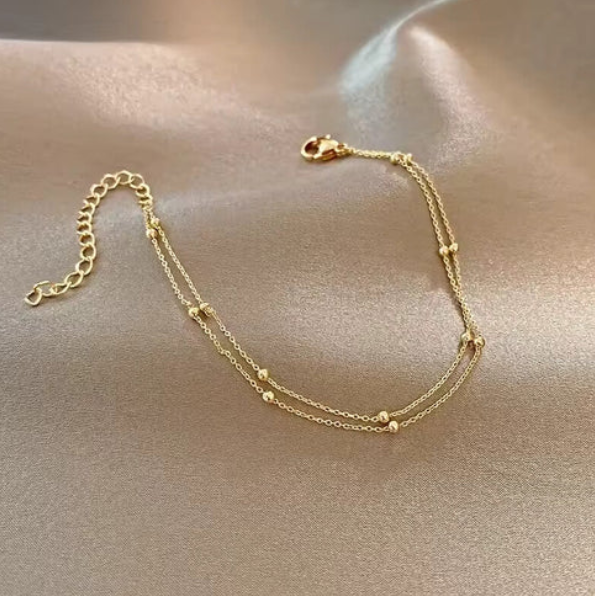 Fashion Double-Layer Small Round Pearl Golden Bracelet